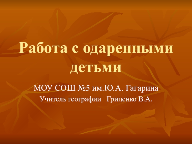 Работа с одаренными детьмиМОУ СОШ №5 им.Ю.А. ГагаринаУчитель географии  Гриценко В.А.