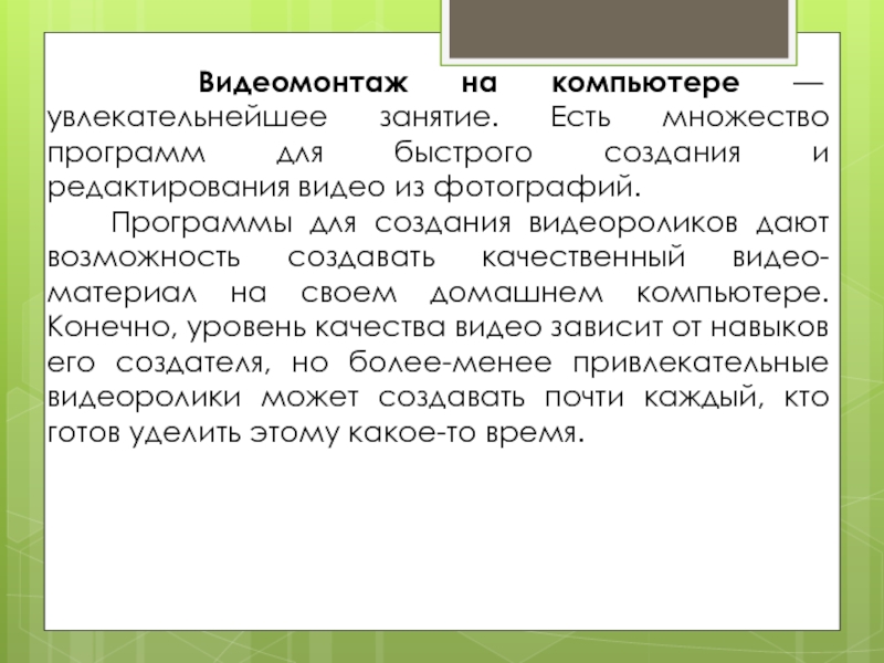 Слайд 2 Видеомонтаж на компьютере — увлекательнейшее занятие. Есть множество программ