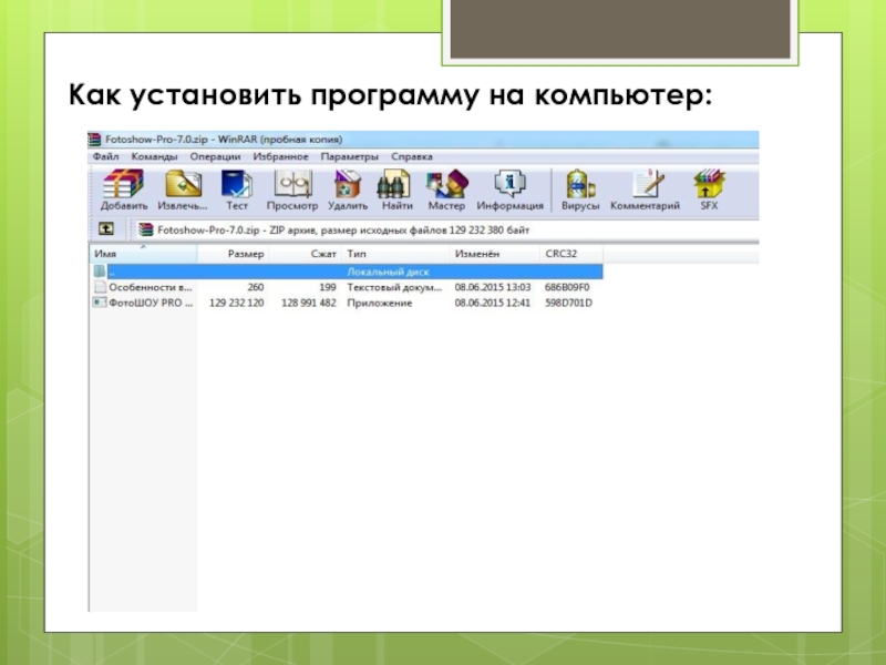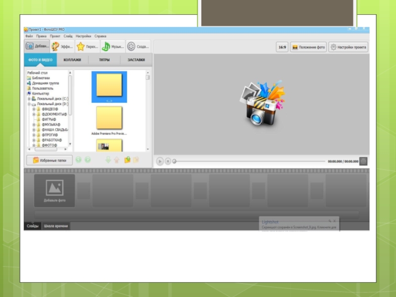 Слайд 1РАБОТА В ПРОГРАММЕ ФОТО – ШОУ ПРО