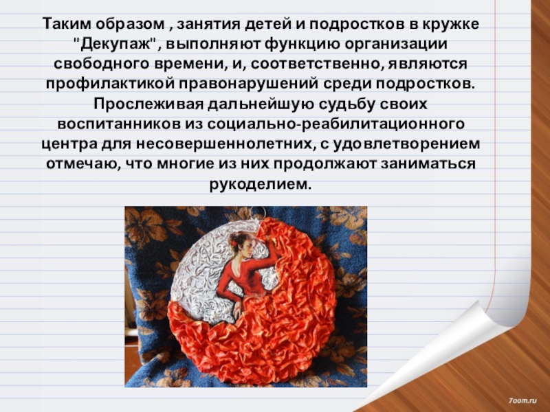 Слайд 15Таким образом , занятия детей и подростков в кружке "Декупаж", выполняют