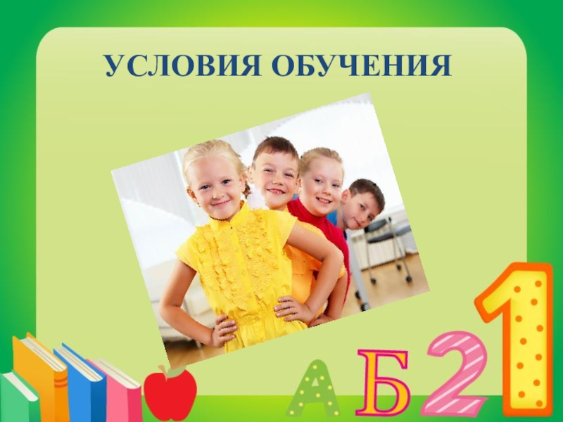 Слайд 6 УСЛОВИЯ ОБУЧЕНИЯ