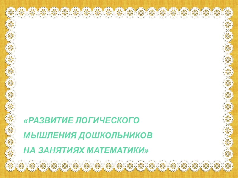 Слайд 1«РАЗВИТИЕ ЛОГИЧЕСКОГО МЫШЛЕНИЯ ДОШКОЛЬНИКОВ НА ЗАНЯТИЯХ МАТЕМАТИКИ»