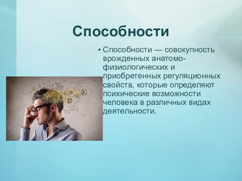 Способности — совокупность врожденных анатомо-физиологических и приобретенных регуляционных свойств, которые определяют