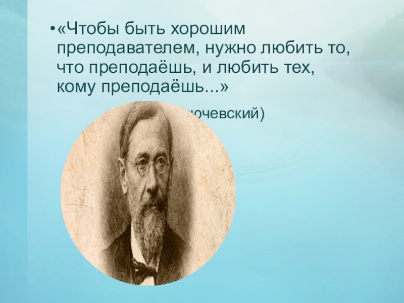 Слайд 13«Чтобы быть хорошим преподавателем, нужно любить то, что преподаёшь, и любить