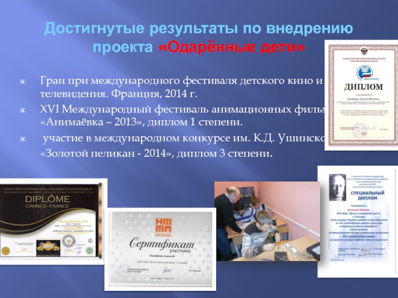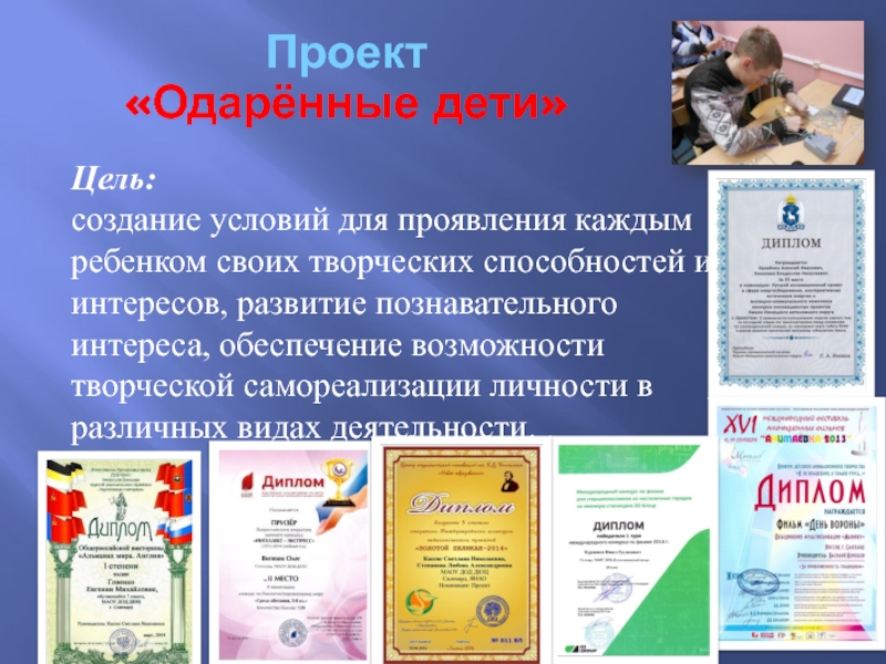 Достигнутые результаты по внедрению проекта «Одарённые дети»