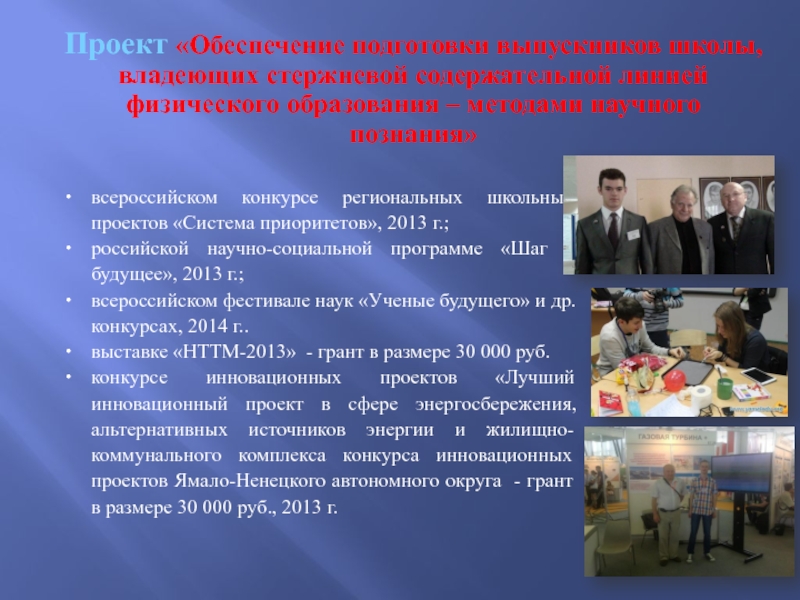 Проект «Обеспечение подготовки выпускников школы, владеющих стержневой содержательной линией физического образования – методами научного познания»