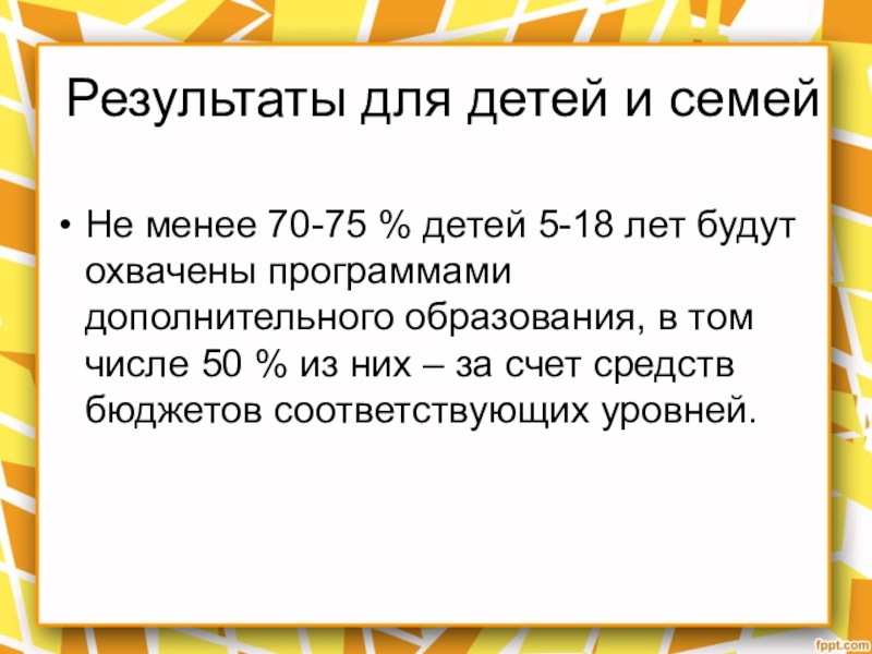 Слайд 20Результаты для детей и семей