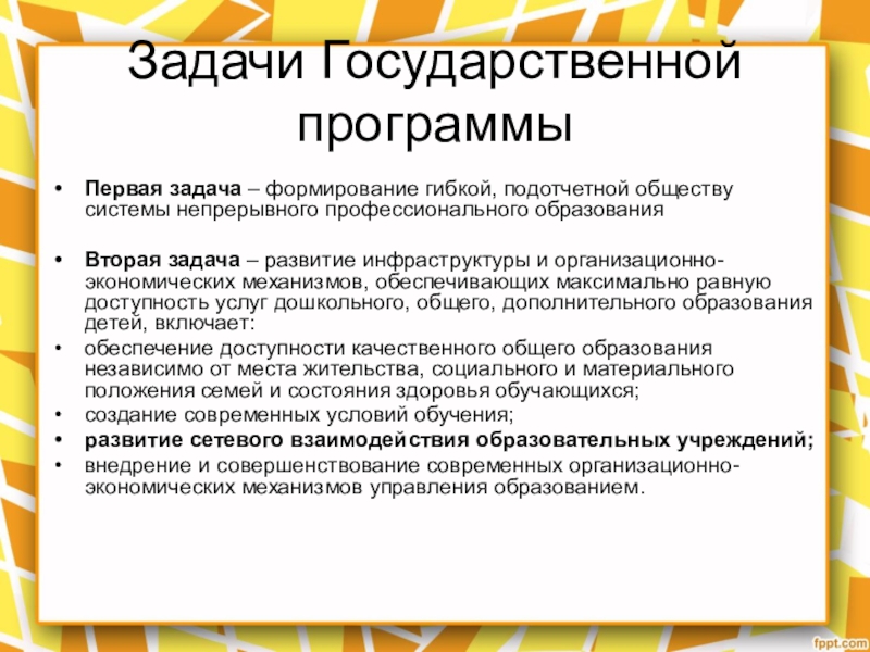 Слайд 19Задачи Государственной программы