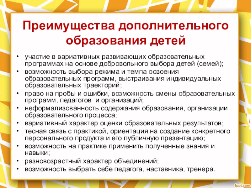 Слайд 12Преимущества дополнительного образования детей