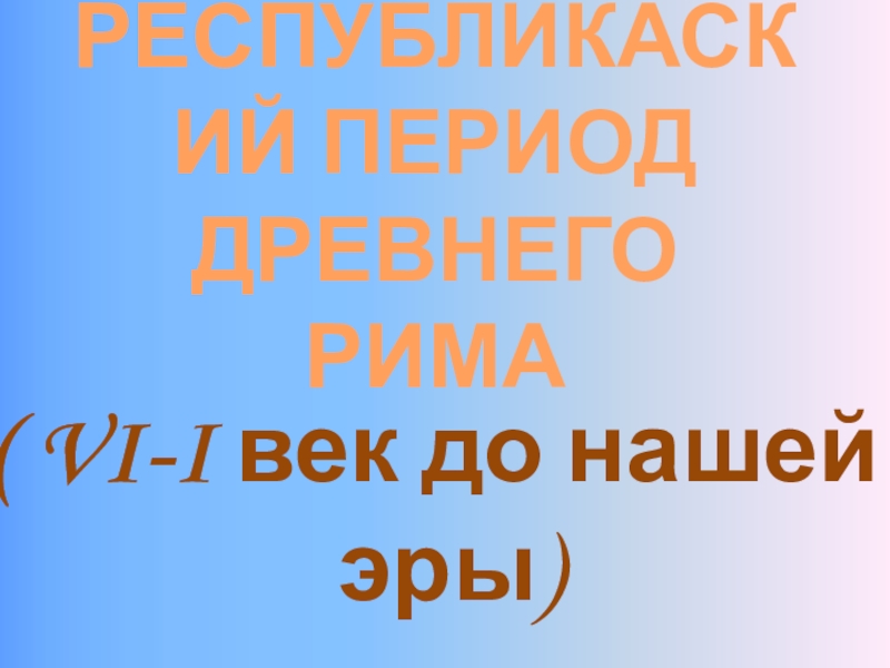 РЕСПУБЛИКАСКИЙ ПЕРИОД ДРЕВНЕГО РИМА( VI-I век до нашей эры)