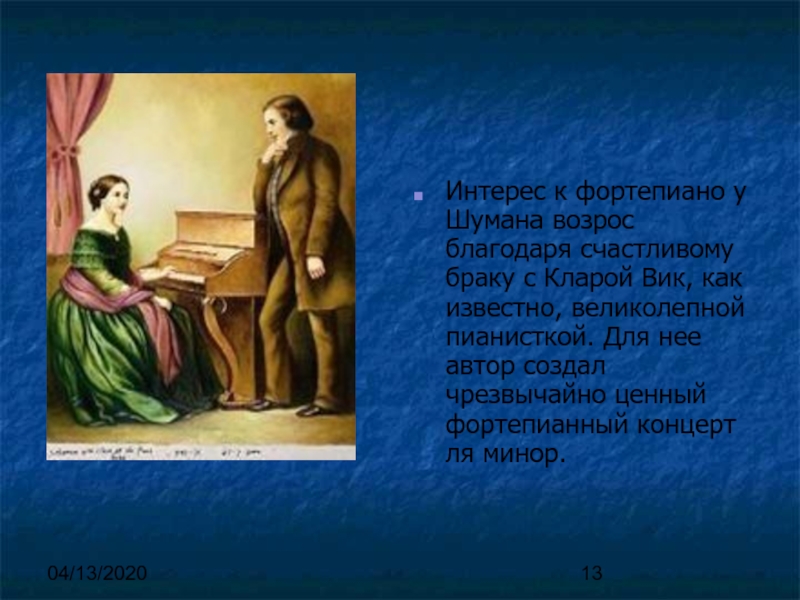 Интерес к фортепиано у Шумана возрос благодаря счастливому браку с Кларой