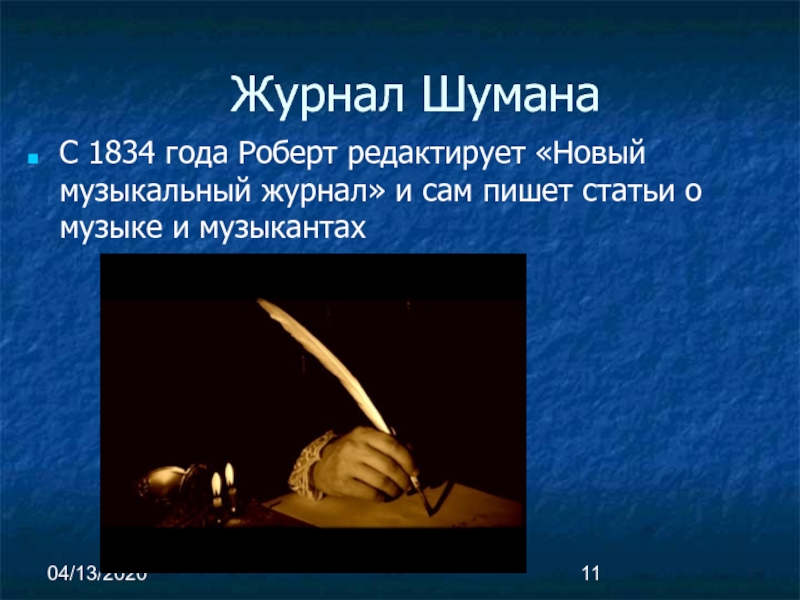 С 1834 года Роберт редактирует «Новый музыкальный журнал» и сам