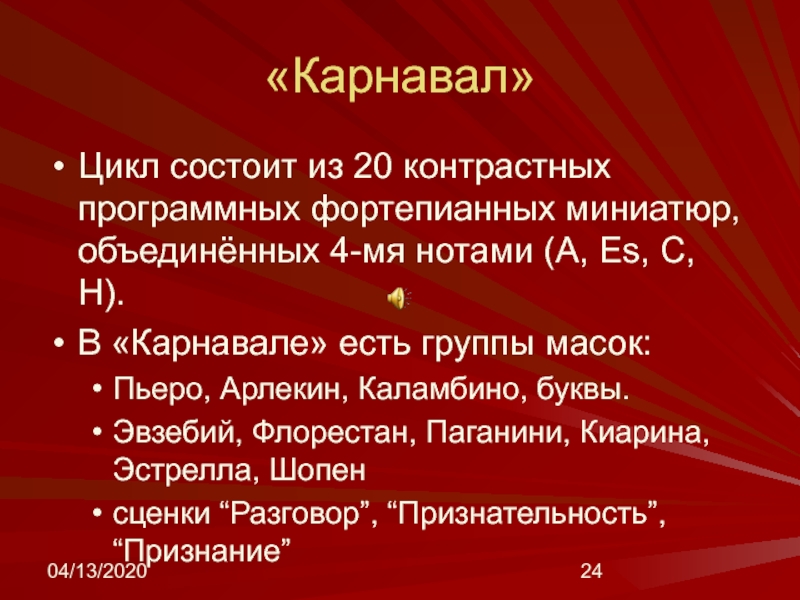 Цикл состоит из 20 контрастных программных фортепианных миниатюр, объединённых 4-мя нотами