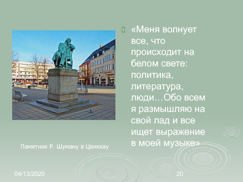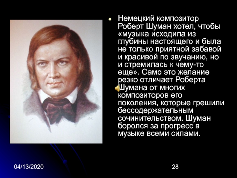 Немецкий композитор Роберт Шуман хотел, чтобы «музыка исходила из глубины настоящего