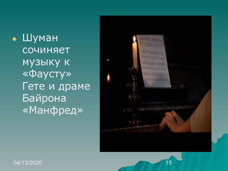 Шуман сочиняет музыку к «Фаусту» Гете и драме Байрона «Манфред»