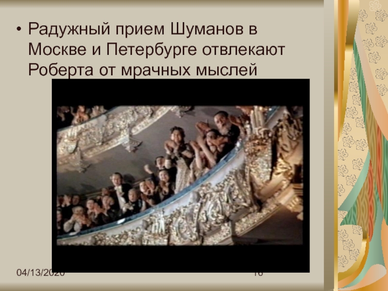 Радужный прием Шуманов в Москве и Петербурге отвлекают Роберта от мрачных