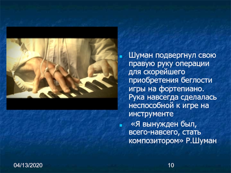 Шуман подвергнул свою правую руку операции для скорейшего приобретения беглости игры