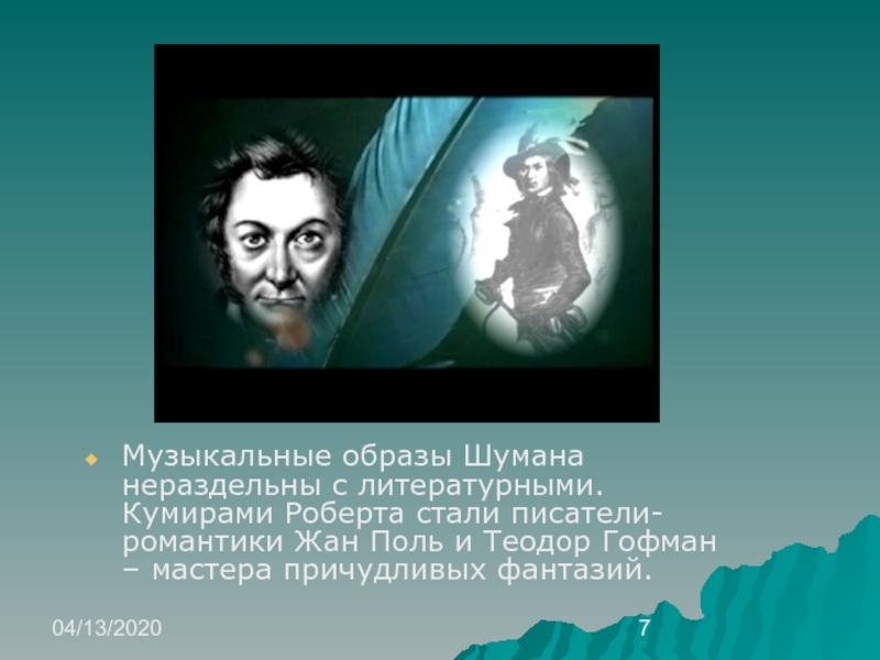 Музыкальные образы Шумана нераздельны с литературными. Кумирами Роберта стали писатели-романтики Жан