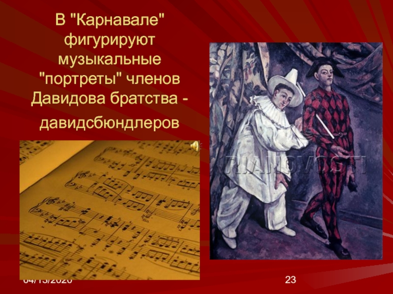 В "Карнавале" фигурируют музыкальные "портреты" членов Давидова братства - давидсбюндлеров
