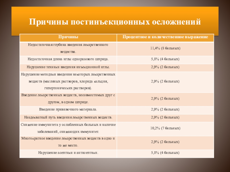 4. В ходе эмпирического исследования проанализировали основные причины возникновения постинъекционных осложнений;