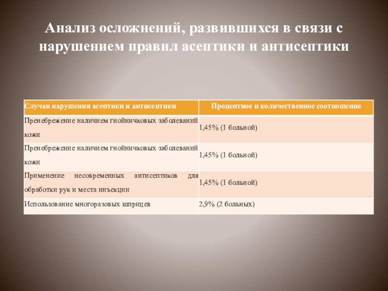 Слайд 9Анализ осложнений, развившихся в связи с нарушением правил асептики и антисептики