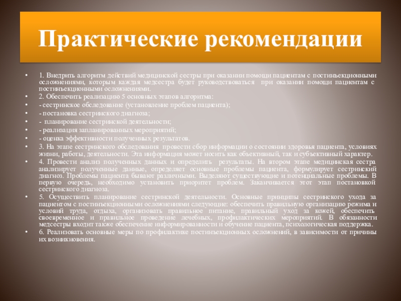 с постинъекционными осложнениями, которым каждая медсестра будет руководствоваться при оказании помощи пациентам с постинъекционными осложнениями.