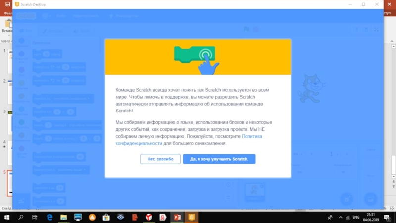 Scratch (Скретч) – событийно-ориентированная среда программирования.Программа знакомит нас с основами программирования, попутно помогая развивать творческие данные, логику