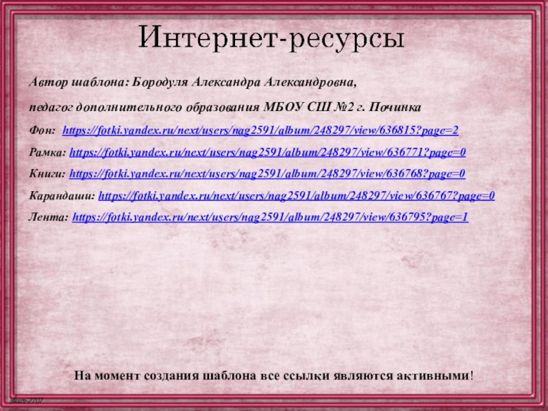 На момент создания шаблона все ссылки являются активными!