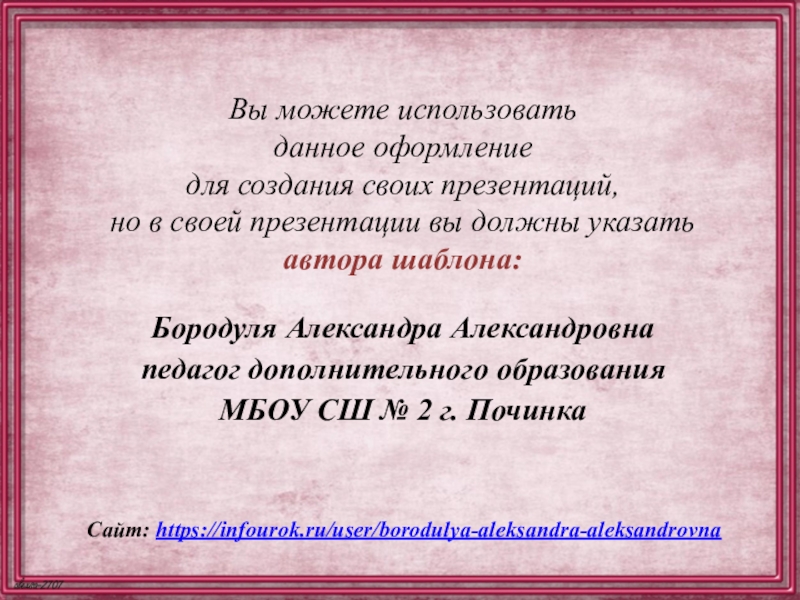 Сайт: https://infourok.ru/user/borodulya-aleksandra-aleksandrovna