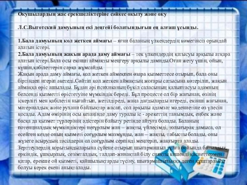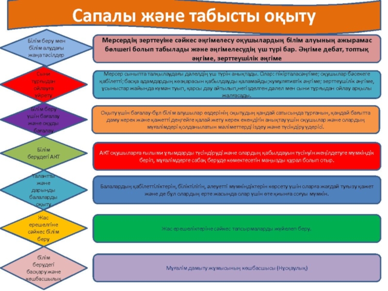 Слайд 24Оқушылардың жас ерекшеліктеріне сәйкес оқыту және оқу