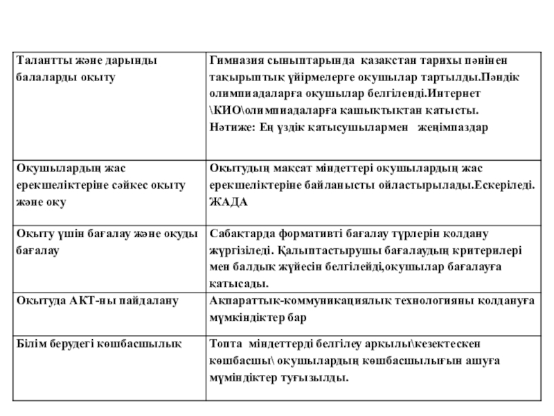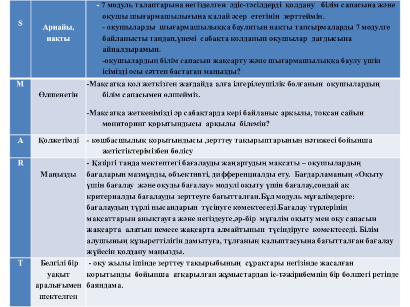 -бағдарламаның 7 модуль талаптарына негізделген әдіс-тәсілдерді қолдану барысында қалыптастырушы бағалаудың критериалдық жүйенісінің оқушы білімін,шығармашылығын бағалауда тиімділігі қандай?