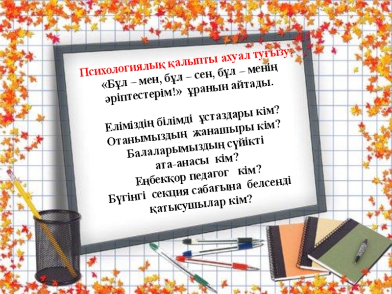 Слайд 3Психологиялық қалыпты ахуал туғызу: