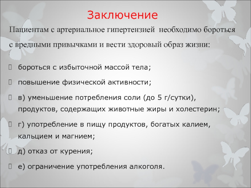 Пациентам с артериальное гипертензией необходимо бороться с вредными привычками и вести здоровый образ жизни: