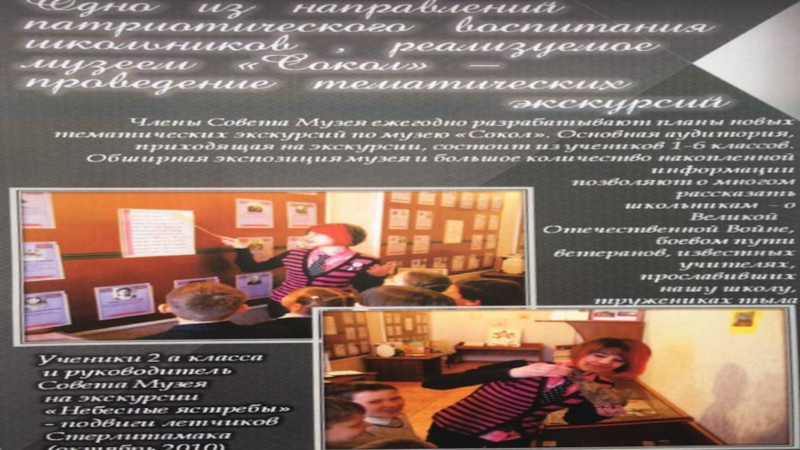 Экскурсии проводились для всех обучающихся классов МАОУ «СОШ № 1»; для дошкольников ДОУ № 74, 73; для ветеранов педагогического труда, неработающих пенсионеров МАОУ «СОШ № 1» на День Пожилого человека, в канун празднования Нового года, на 8 марта; для тружеников тыла микрорайона «Курчатовский» 20 февраля и 3 марта.
