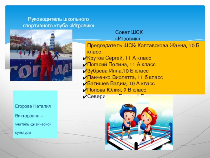 Председатель ШСК: Колтавскова Жанна, 10 Б класс