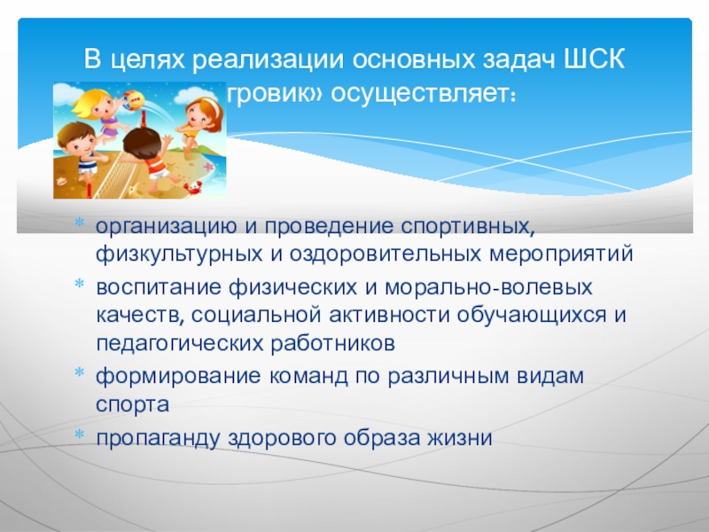 В целях реализации основных задач ШСК «Игровик» осуществляет: