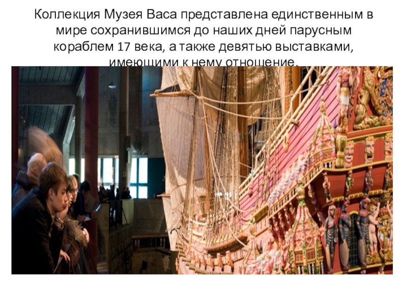 Слайд 15Коллекция Музея Васа представлена единственным в мире сохранившимся до наших дней