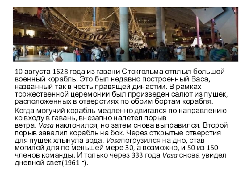 Слайд 1610 августа 1628 года из гавани Стокгольма отплыл большой военный корабль.
