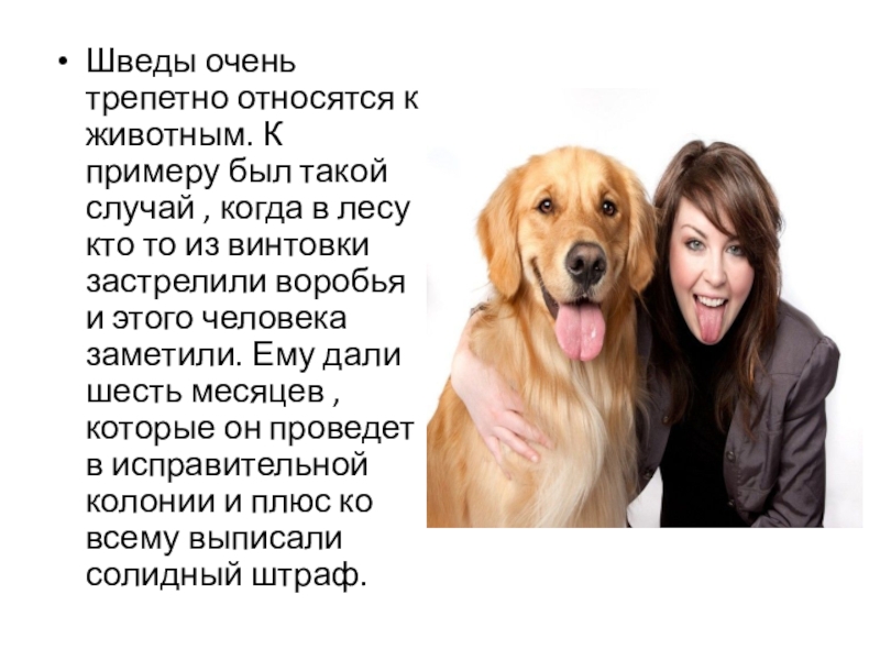 Слайд 9Шведы очень трепетно относятся к животным. К примеру был такой случай