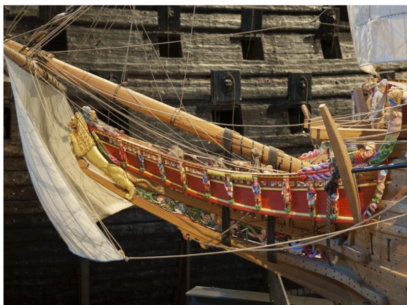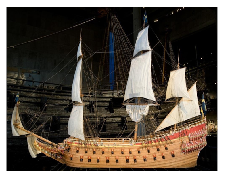 Это был недавно построенный Васа, названный так в честь правящей династии. В рамках торжественной церемонии был произведен салют из пушек, расположенных в отверстиях по обоим бортам корабля.