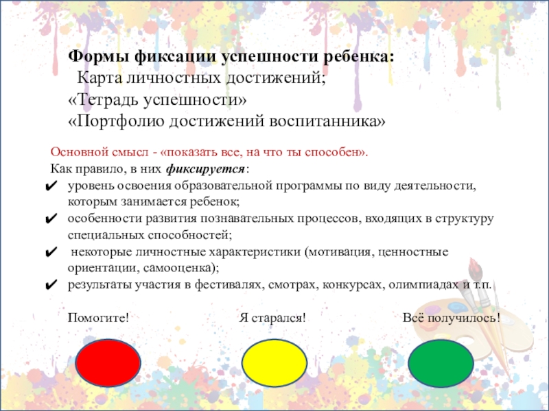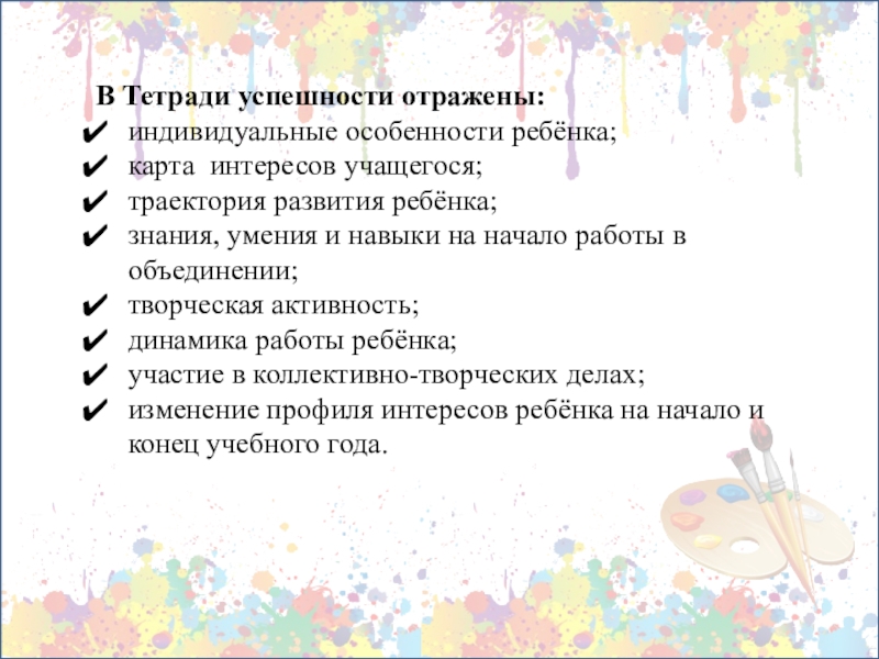 уровень освоения образовательной программы по виду деятельности, которым занимается ребенок;