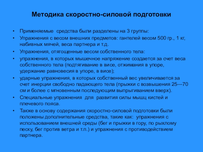 Слайд 8Методика скоростно-силовой подготовки