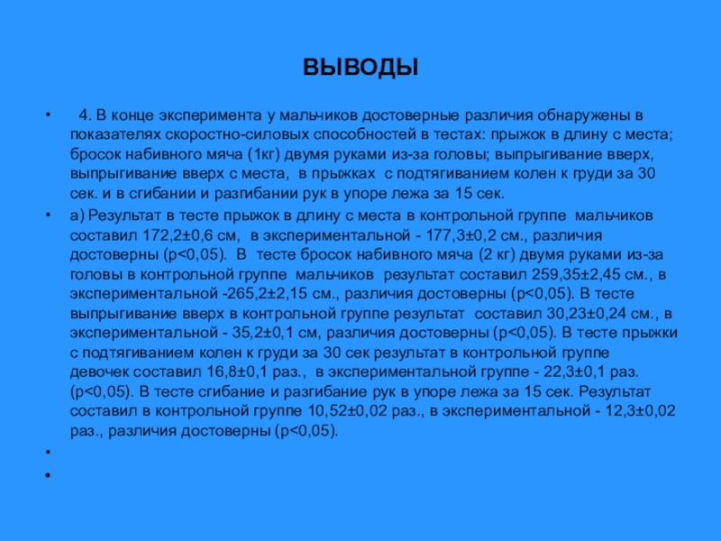 4. В конце эксперимента у мальчиков достоверные различия обнаружены в