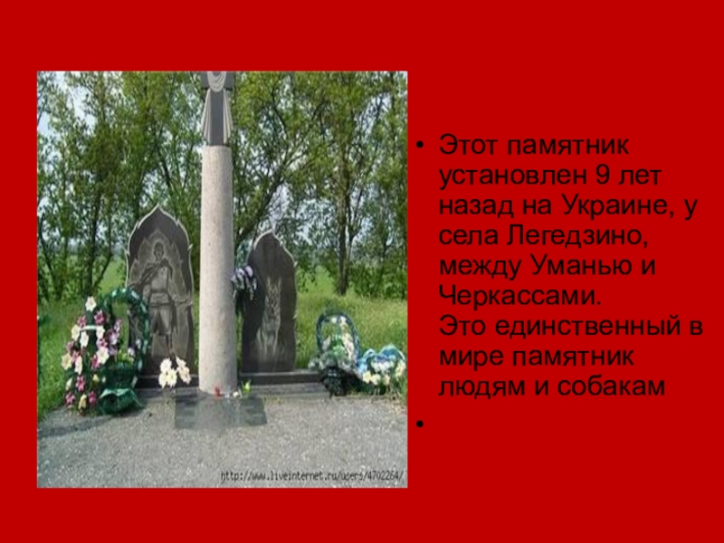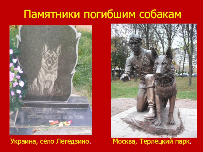 Слайд 29Памятники погибшим собакам