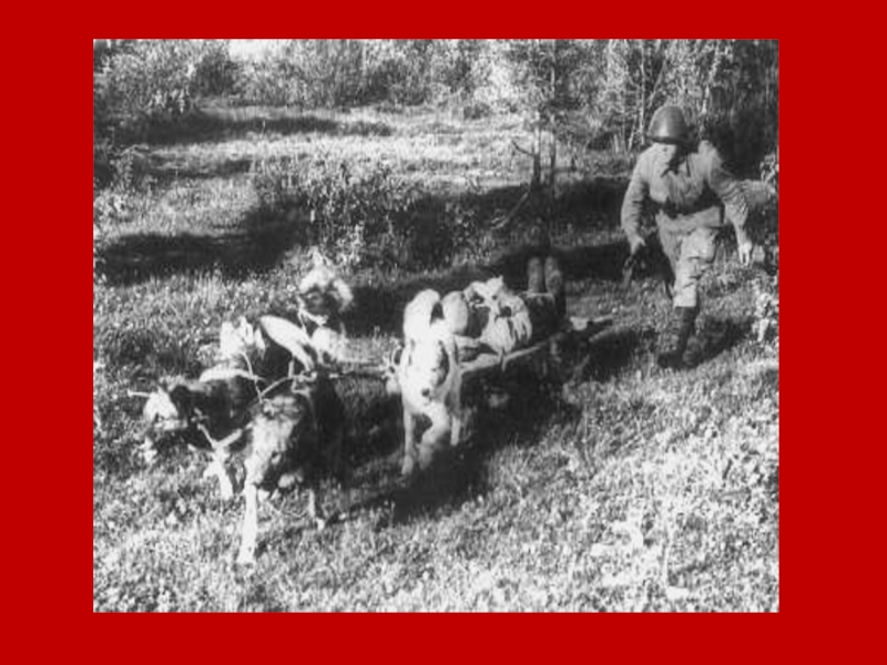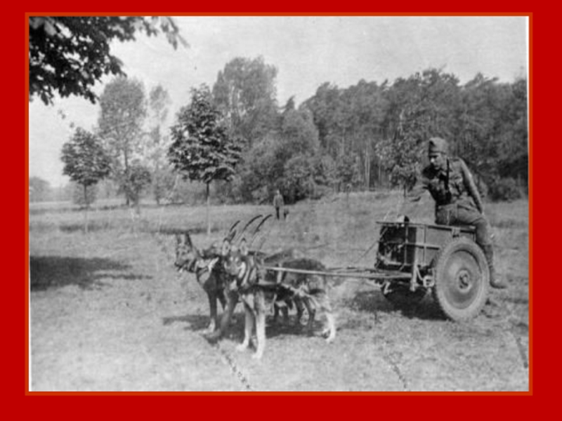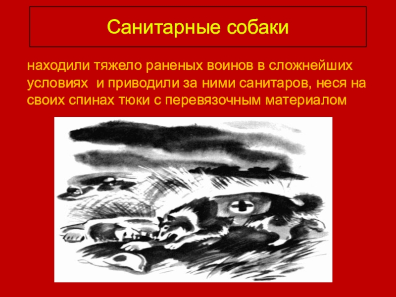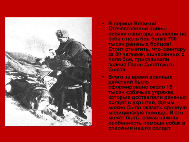 Слайд 15В период Великой Отечественной войны собаки-санитары вынесли на себе с поля