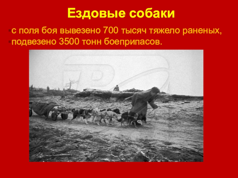Всего за время военных действий было сформировано около 15 тысяч собачьих упряжек, которые доставляли раненых солдат в укрытие, где им можно было оказать срочную медицинскую помощь. И это, может быть, самая важная особенность помощи собак в спасении наших солдат.