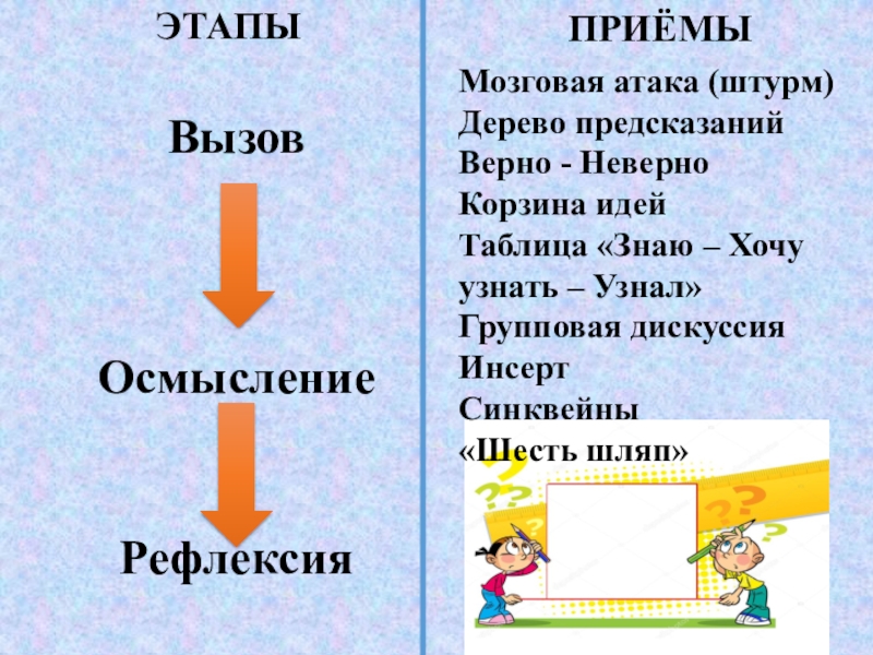 Творчество. «Как можно было бы применить?» «Что можно было бы сделать иначе?» «Как можно было бы усовершенствовать …?»