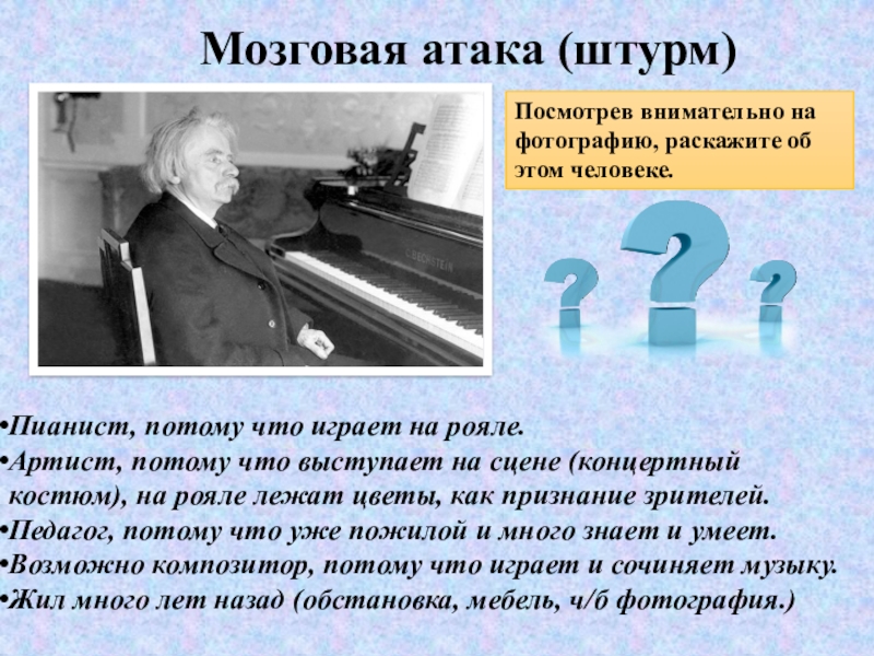 Посмотрев внимательно на фотографию, раскажите об этом человеке.