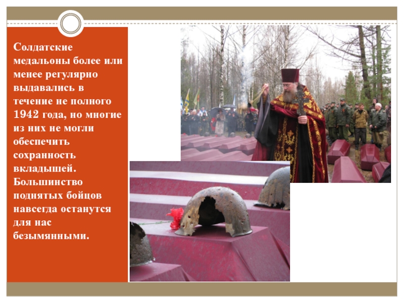 1942 года, но многие из них не могли обеспечить сохранность вкладышей. Большинство поднятых бойцов навсегда останутся для нас безымянными.