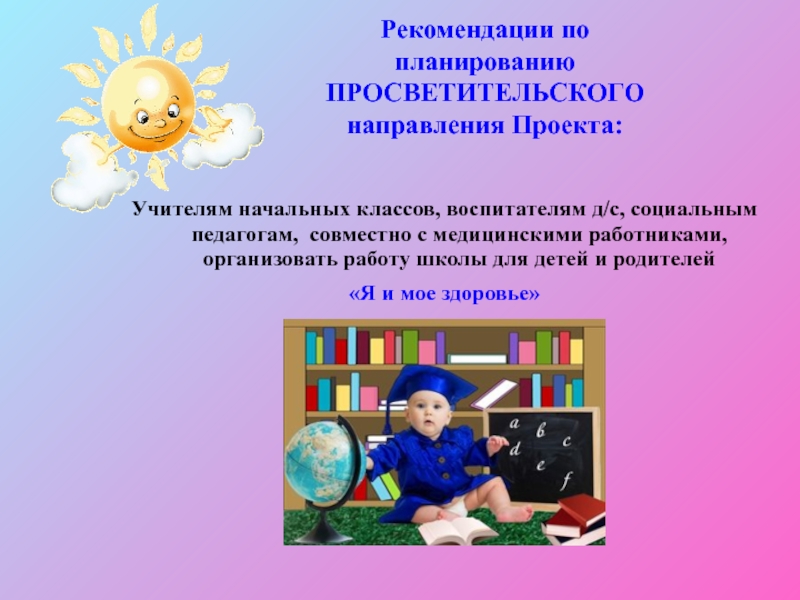 д/с, социальным педагогам, совместно с медицинскими работниками, организовать работу школы для детей и родителей